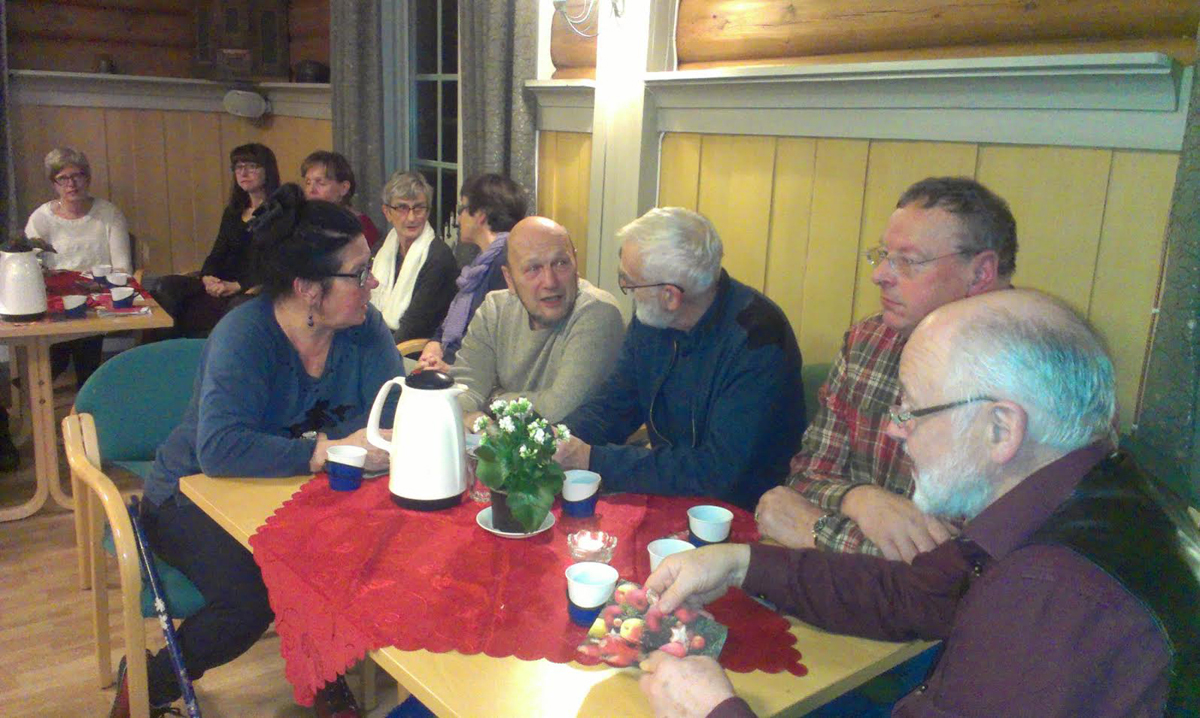 Peisestua var helt full av vartinger da Historielaget hadde sitt siste møte før jul. Kjell Einar Andersen kom og viste bilder og fortalte fra en av reisene sine til Grønland.