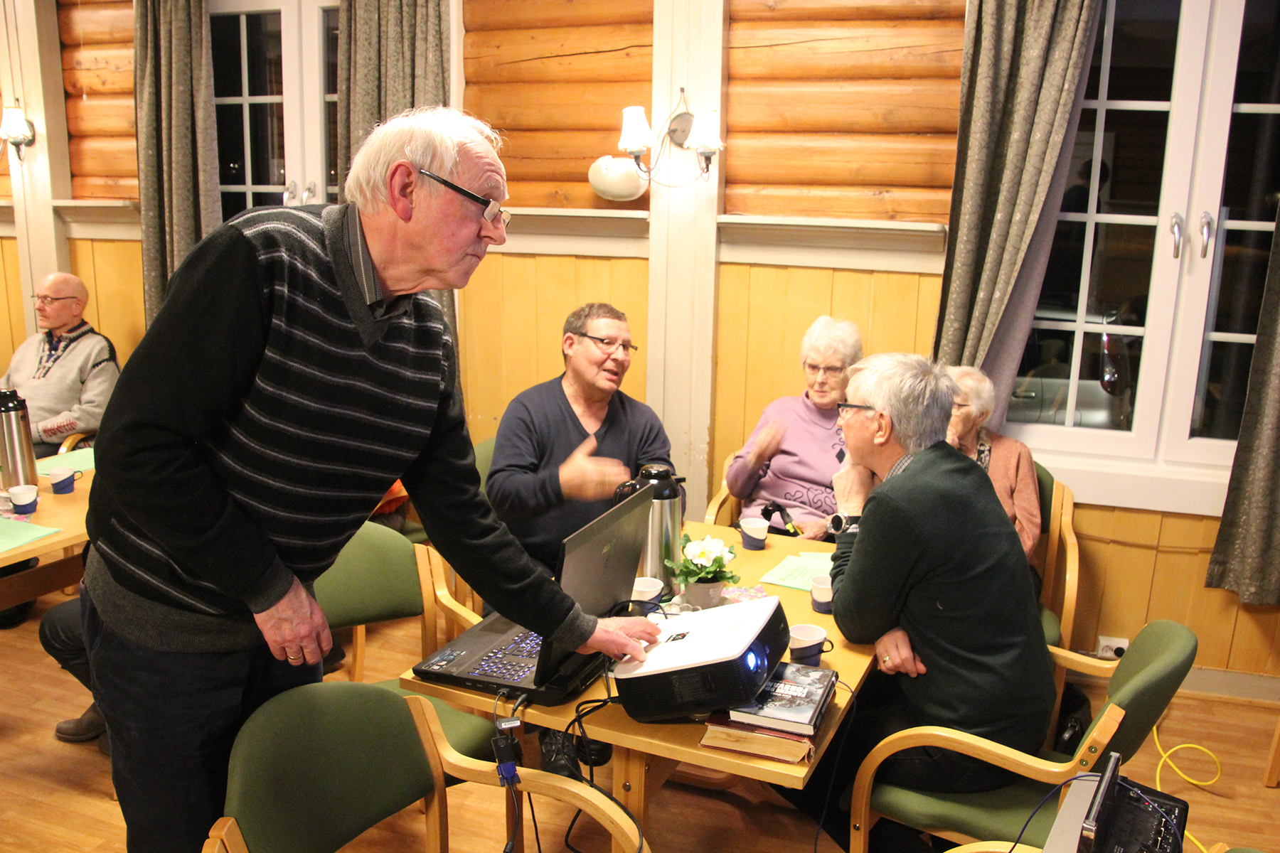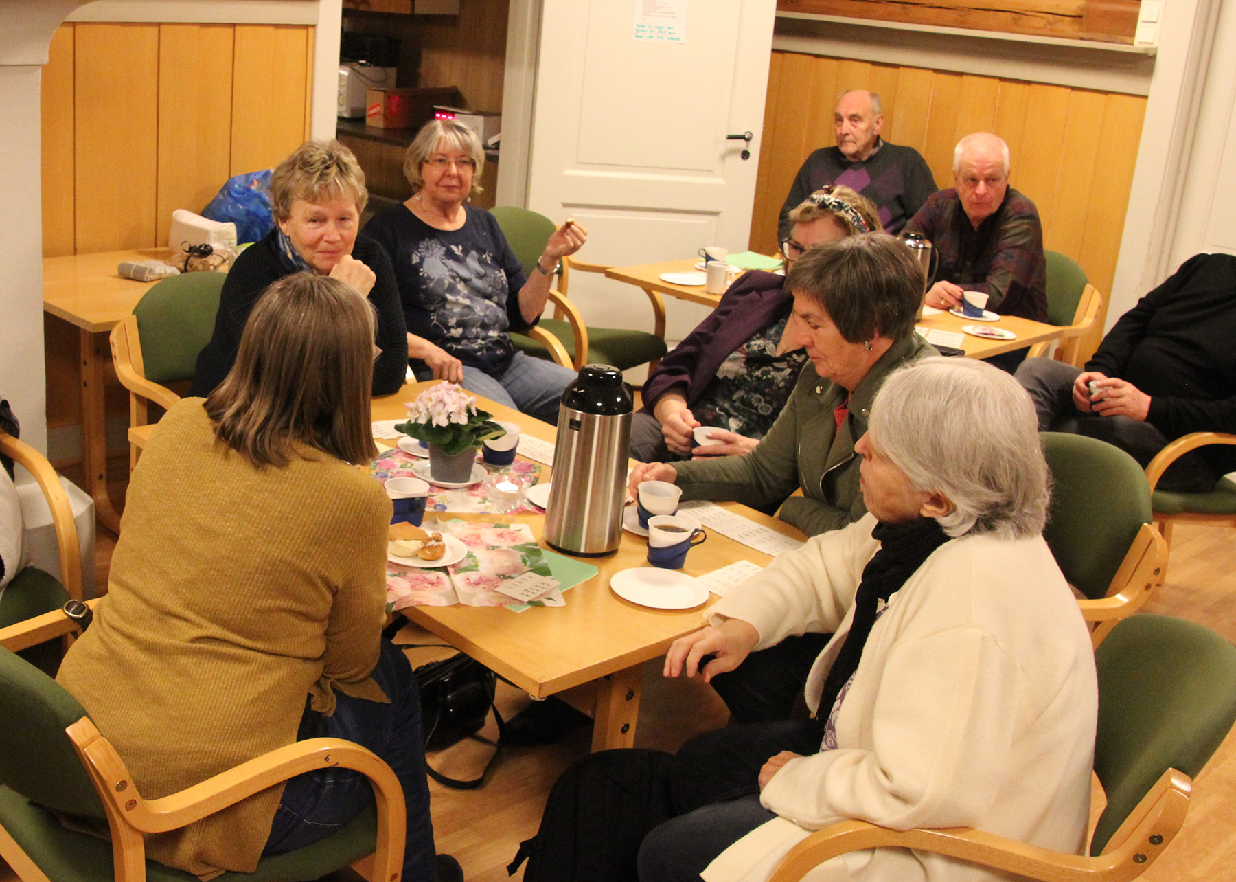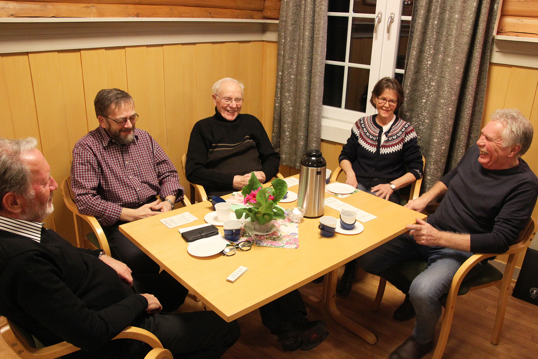 Så inviterte kjøkkenkomiteen på kaffe og hjemmebakte wienerbrød m.m, og praten gikk livlig rundt bordene i peisestua. Det ble solgt lodder, og mange kunne ta med seg en gevinst eller to hjem.