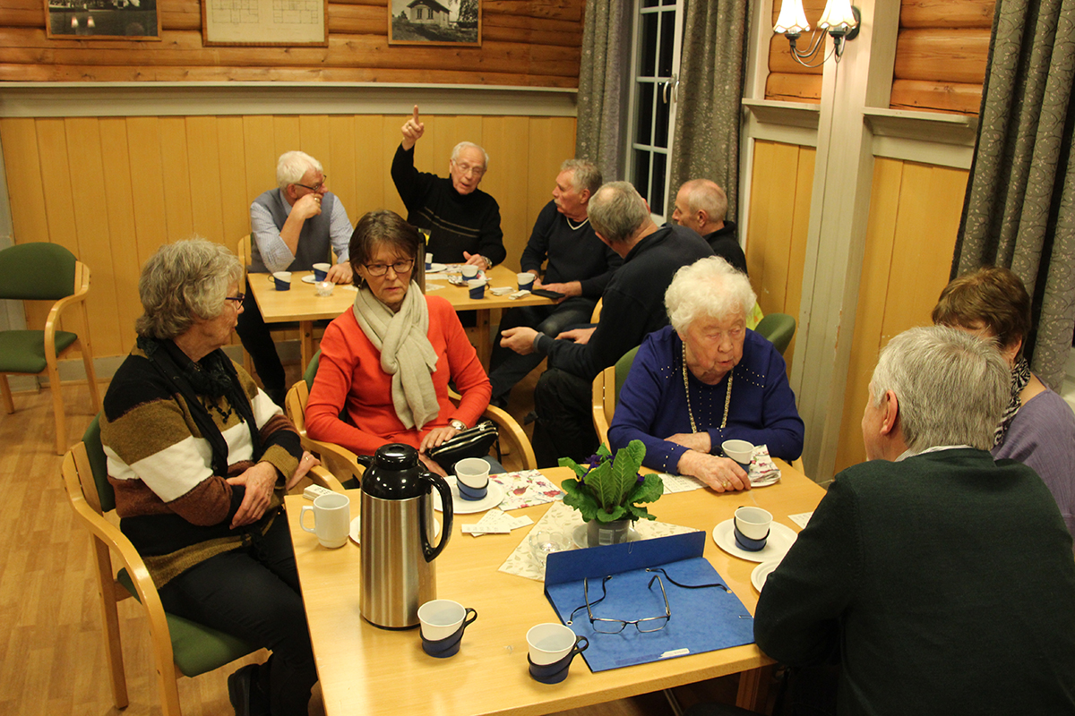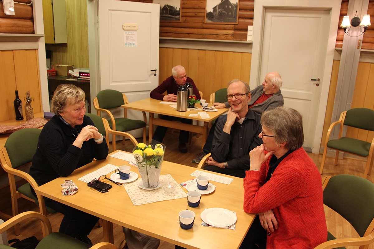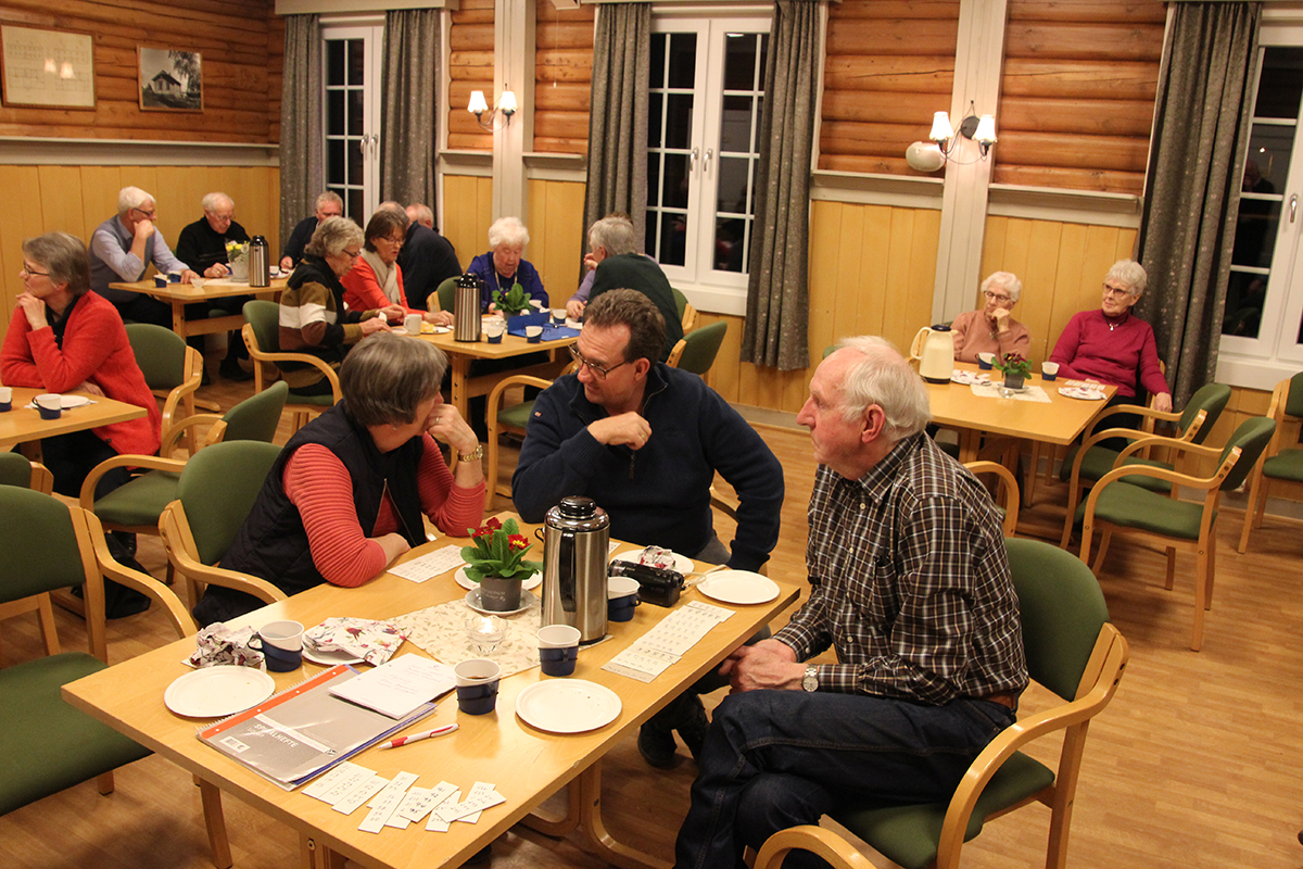 Etter traktering fra kjøkkenkomiteen av kaffe og mat, ble det utlodning og noe prat omkring lagsarbeidet. Ellers ble det som seg hør og bør, mye hyggelig prat rundt bordene i peisestua denne kvelden.